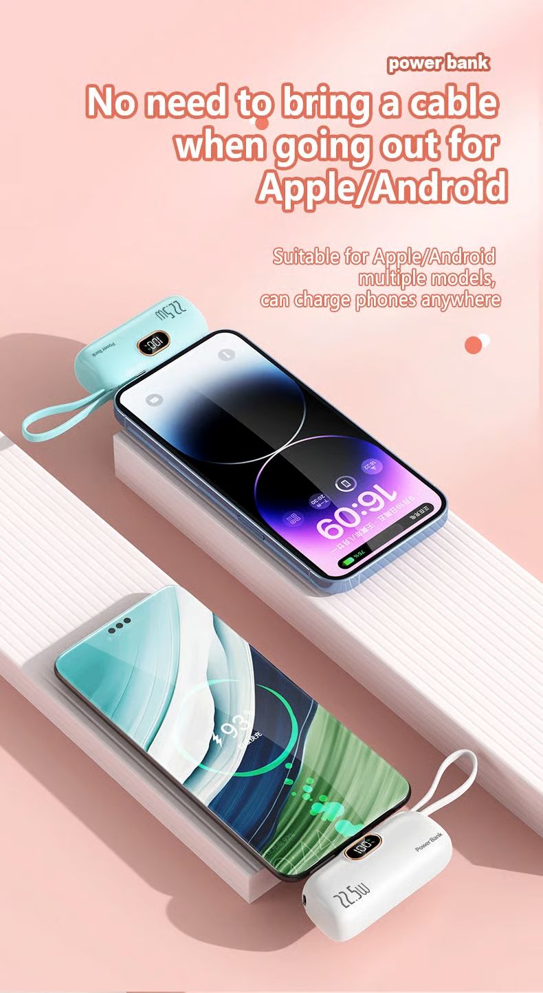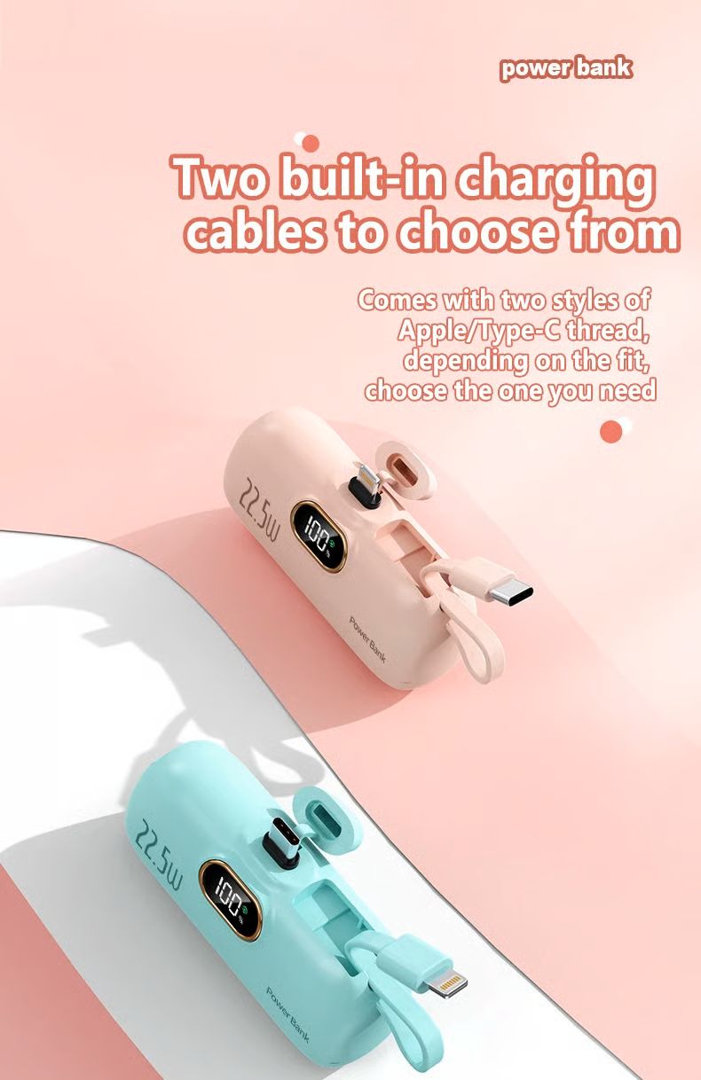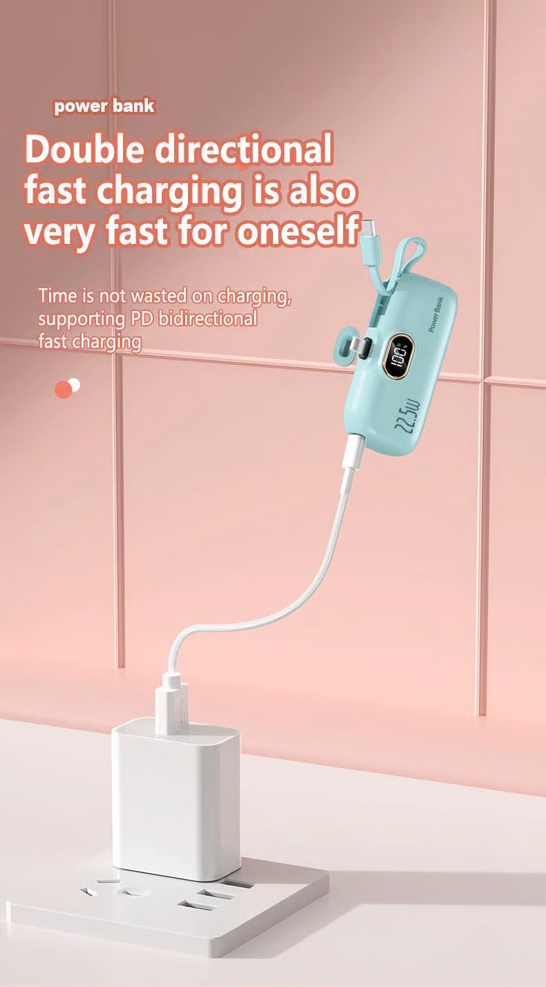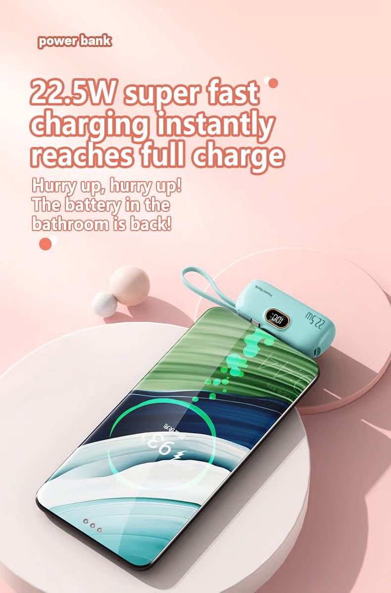 5000mAh mobile phone mini power bank, 22.5W three-output digital display fast charger, lightweight and compact